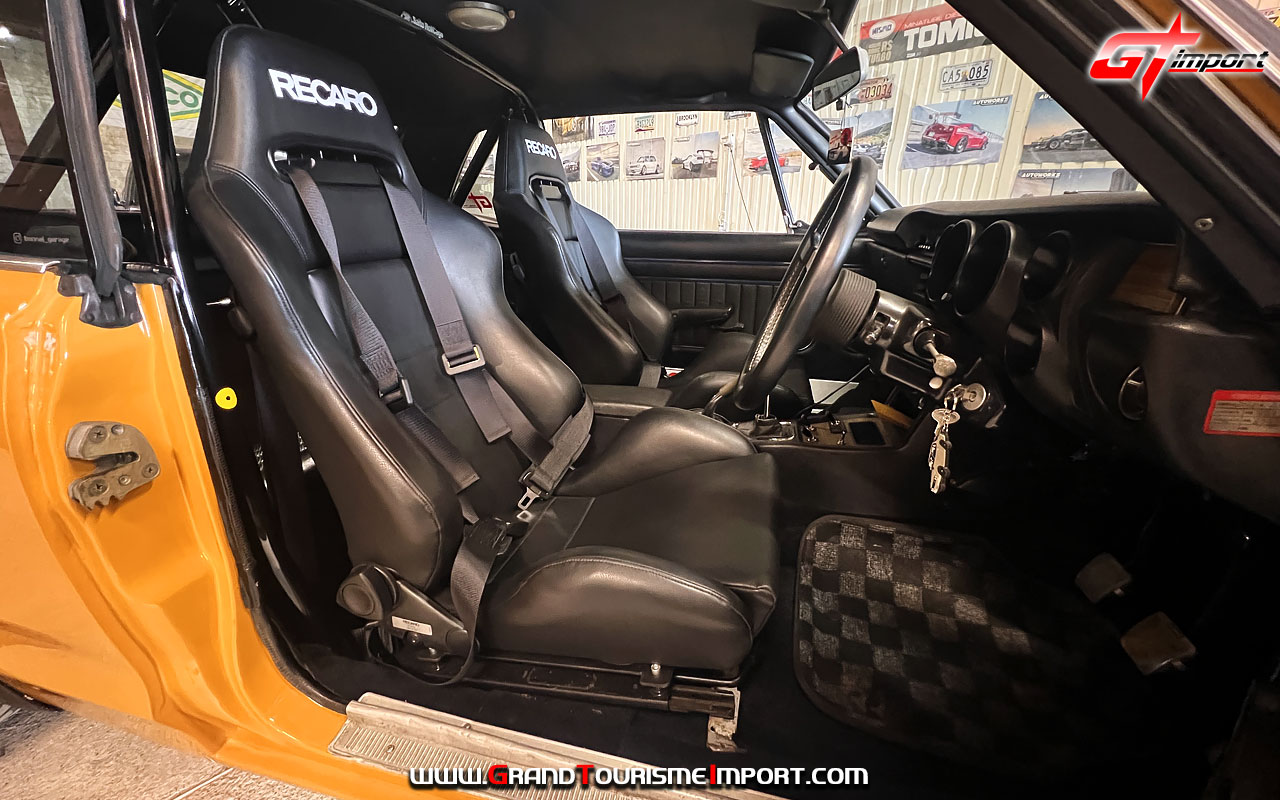 Véhicule restauré. Bloc moteur L28 160cv, freinage Skyline R32, sièges RECARO, demi-arceau, nombreuses pièces aftermarket. Kilométrage non certifié (totaliseur à 5 chiffres). Visible sur rendez-vous.